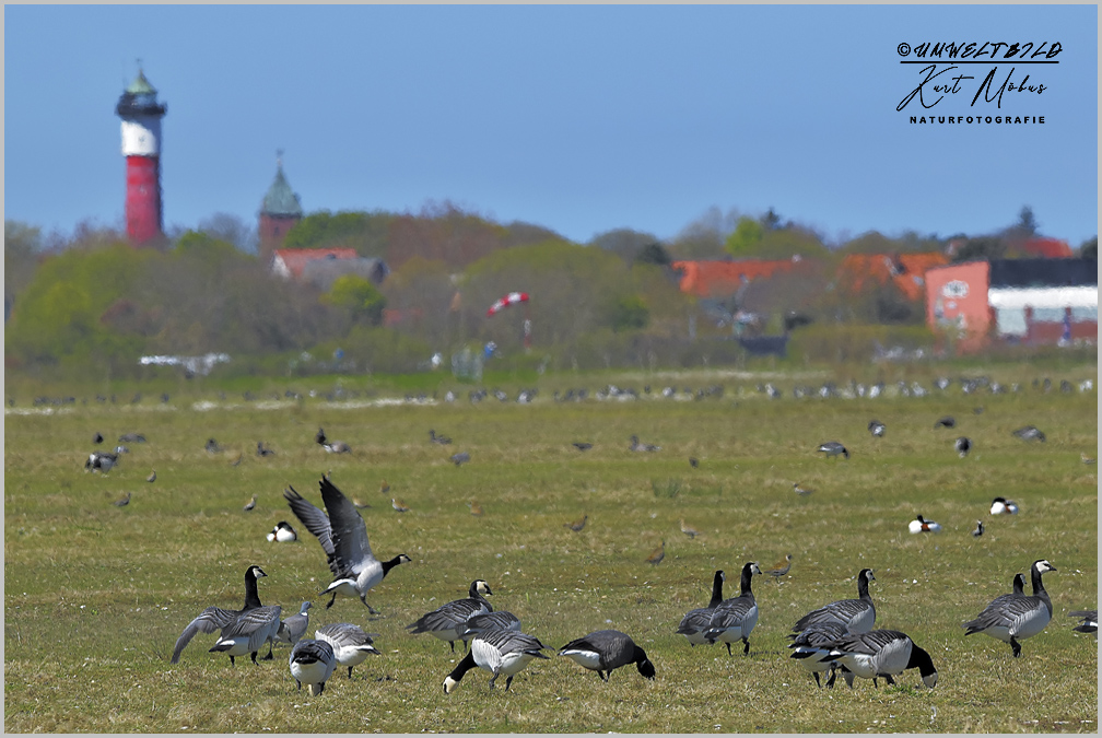 Hunderte von Gänsen weiden im Groden beim Flugplatz, hier vor allem Nonnengänse