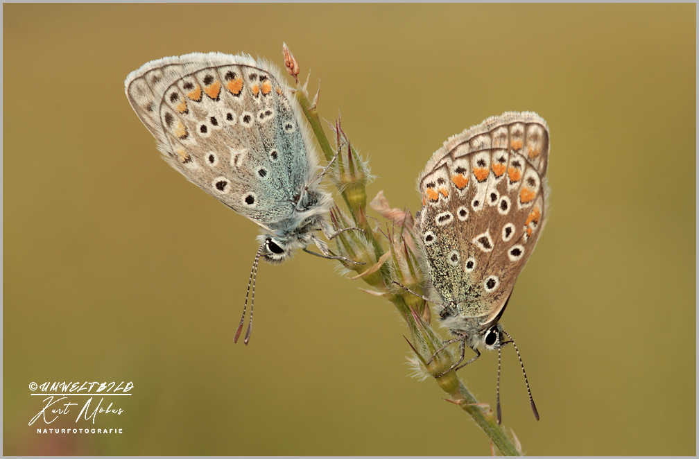 Gemeiner Bläuling, auch Hauhechelbläuling genannt, Paar am Schlafplatz