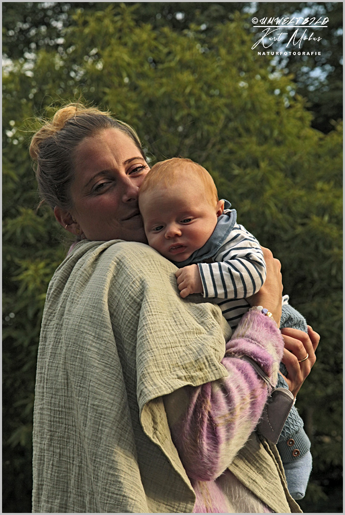 Stolz trägt Katharina ihren noch ganz jungen Sohn spazieren