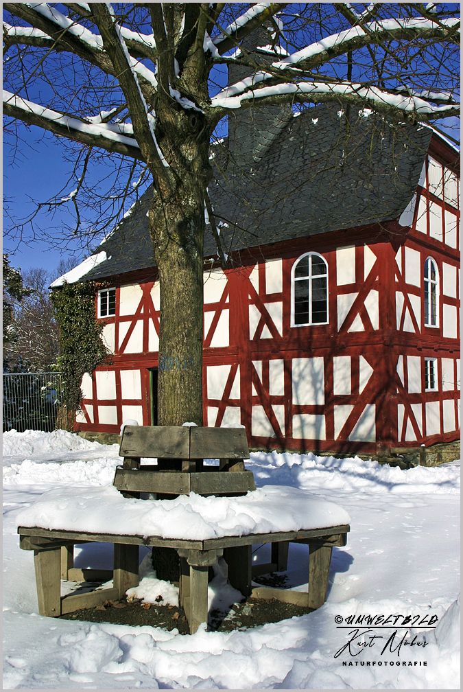UMWELTBILD Die Kirche von Niederhörlen im Schnee