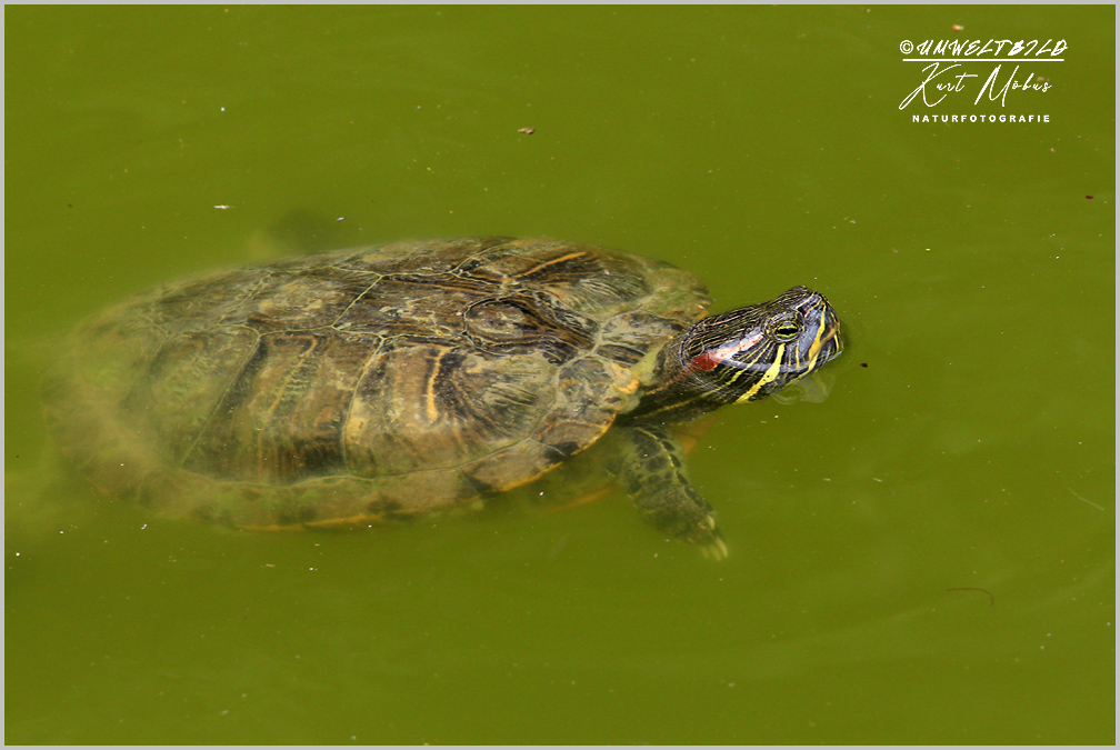 Die Rotwangen-Schmuckschildkröte stammt aus Nordamerika!